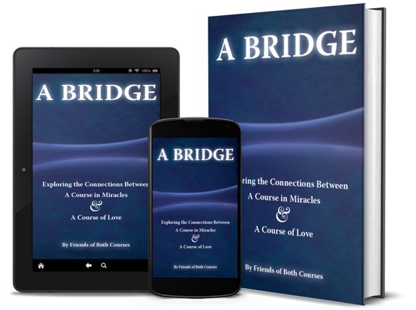 A Bridge explores the connections between A Course in Miracles and A Course of Love, offering straight answers to questions like “What’s different about the message of ACOL?”, “Do both ACIM and ACOL see the world as an illusion?”, “How can ACOL help me in my life?”, “What could ACOL offer that I haven’t already gotten from ACIM?” Many long-time students of ACIM have wholeheartedly embraced ACOL without diminishing in the slightest their love for ACIM. Others have been hesitant about “another Course.” This little book was written by students of both Courses. It’s offered as a bridge of love.