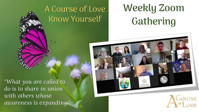 There are many online groups that gather weekly to read together and share personal experiences. They are not classes or presentations, but facilitated dialogues intended to hold space for each participant’s expression. An example is the Guided Journeys facilitated by Glenn Hovemann. Other examples are the groups sharing A Course of Love.